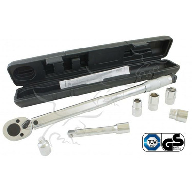 Chave de torque com ampla faixa de torque e uma variedade muito útil de acessórios para a indústria automotiva. A chave é feita de cromo vanádio sob os requisitos dos controles de qualidade alemães TUV e GS, o que certifica uma baixa margem de erro no coeficiente de aperto . Esse recurso, somado ao parafuso localizado no cabeçote que permite o ajuste do torque, limitará bastante a faixa de falha.