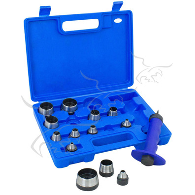 Este conjunto de punções possui um adaptador ou mandril para acoplar as diferentes cabeças e fazer o punção nele. O uso é muito simples, pois o punção central fixa a posição e faremos cortes perfeitos em inúmeros materiais.