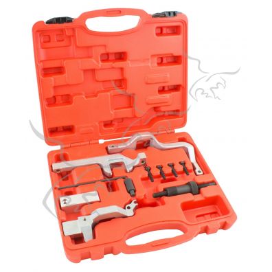 Iva incl.Jogo de bloqueio e ajuste de distribuições em motores BMW Mini e Citroën Peugeot do grupo PSA. Inclui ferramentas para sincronizar a árvore de cames (OEM: 119540), para ajustar a cambota e a bomba injetora (OEM: 119590) e para tensionar e ajustar a cadeia ou correia/cinto de distribuição (OEM: 119340).